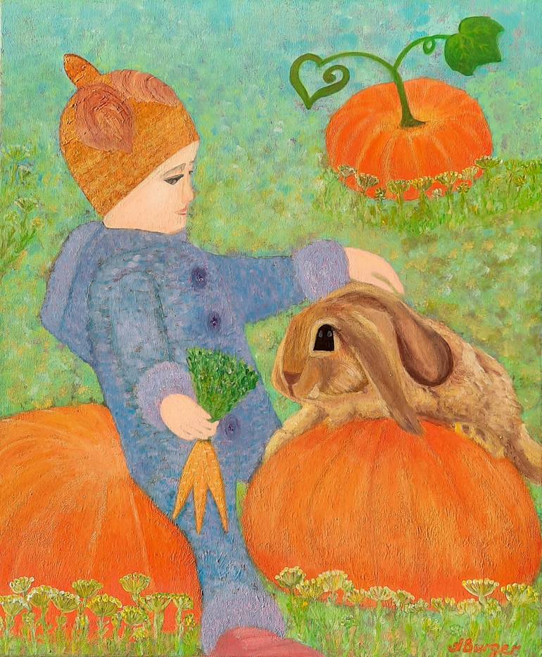 This charming "Acrylic Impasto Painting of A Child with a Rabbit on Pumpkins" was inspired by the innocence and wonder of childhood, as well as the role of nature in fostering imagination. The work draws from folklore themes where animals and children coexist harmoniously in idyllic settings. I hope...