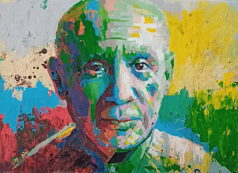 This painting was inspired by the great artist Pablo Picasso. This is how I see him in my mind
