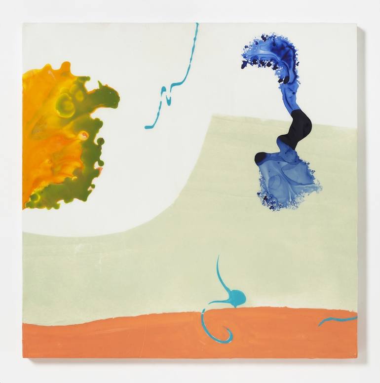 I create nonrepresentational paintings expressing my bodily experience of the world. The works are not purely abstract, but an amalgam of the gestural with the precisely representational. Working in an intuitive tradition, I bring in the element of chance at the very beginning. The liquid spill, a pooling pour of paint, is the first mark, and my chosen way of activating space. The origins of this body of work are from early 2014 when I spent a formative month in residency at Sanskriti Foundation in New Delhi. The foundation houses several small exhibit spaces and it was there that I learned of India’s rich tradition of shadow puppetry. Formed of elaborately cut and painted translucent skins, the puppets represent Hindu deities. The intricate edges and shapes resonated, leading me to revisit the poured paint studies I’d been trying out in the studio before my trip. I’d discovered that I was drawn to the natural pigment separations and shapes of the spill on the Mylar’s nonabsorbent surface – the rivulets of paint resembled the contours of the puppet deities’ hands, feet, headdresses, and limbs. But my work has nothing to do with the Hindu religious iconography. My dried paint puddles are up for interpretation, allowing an open ended quality to which I aspire. The spill becomes the spring board for what follows, as well as the central character in a dance. Since then, the work has grown from small drawings/collages on paper to large scale paintings on canvas and aluminum.