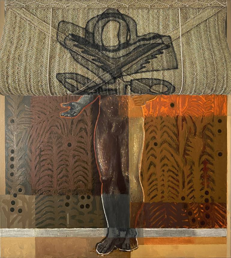 About the feeling of vulnerability in a new place. You are here, but you are afraid to go “outside”. The portrait is covered with a parsiana with Ukrainian ornamentation — like a mask, as in Jung’s theory: an external facade that hides true emotions.
