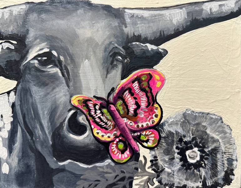 Inner peace and stillness brings more strength and joy than any form of action we can take. Choosing a calm animal like a cow/longhorn as a subject to showcase the joy in the form of a butterfly, I want to emphasize that sometimes stillness is the best movement.