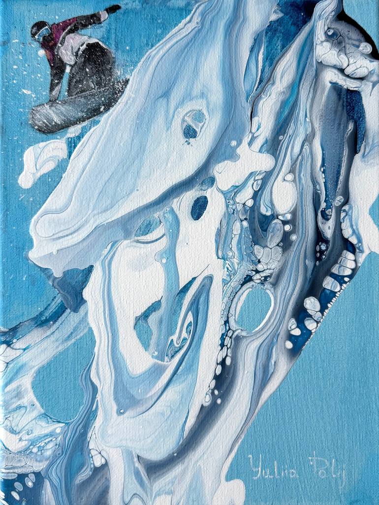 “Adrenaline Wave” is a combination of elements and sensations expressed through mixed media. I used fluid art to create an abstract flow reminiscent of a wave or ice, and traditional painting helped to convey the movement and energy of a snowboarder. Acrylic paints on canvas allowed me to play with ...