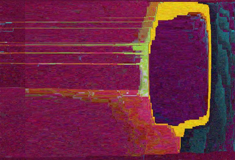 From a series of abstract digital paintings exploring themes in science, technology, and society. The effects of scripted software tools are used intuitively in a collaboration between the artist and the computer's programmed ideals of composition.