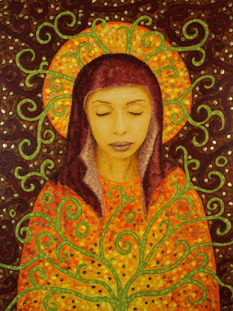 El Advento (The advent season) consists of 4 individual paintings. They are part of the series 'Tiempo para Despertar' (Time to wake-up) Advento III is made of acrylics and genuine gold leaf on canvas