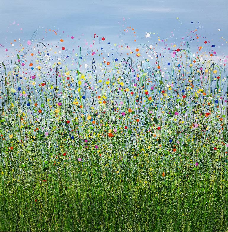After The Rain 80 x 80 cm really pleased with the vibrancy of this piece. Signed on the Front Ready To Hang Edges painted white A large statement piece to brighten any home or office. Using my signature stringy grass technique I have created a bountiful vibrant meadow with an abstract twist. I ...