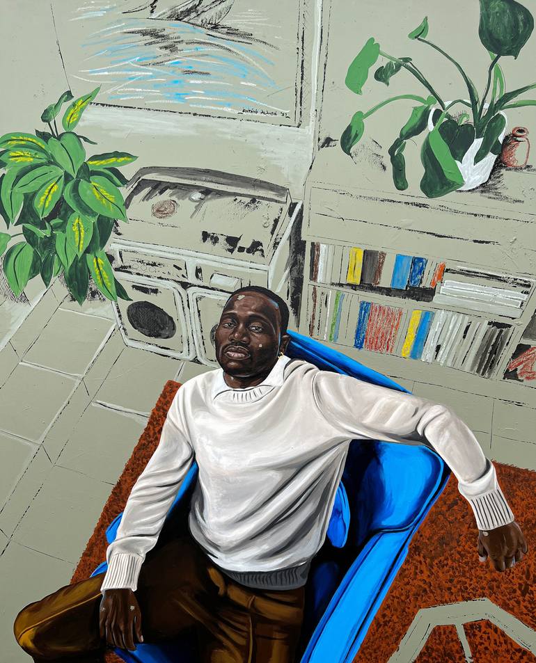 Eyitayo Alagbe (b. 1997) EYITAYO ALAGBE is a Nigerian multimedia visual artist based in Ibadan, Nigeria. He was born and raised in Ogbomoso, Oyo State, where he developed his artistic abilities from an early age. He honed his skills through a combination of natural talent, formal education, and practical experience. He holds an NCE certificate in Fine and Applied Arts from Emmanuel Alayande College of Education, Oyo (2019) and a degree in Fine and Applied Arts from Obafemi Awolowo University(2023). Eyitayo’s artistic practice explores the complexities of human experience, delving into themes such as diverse lifestyles, emotions, struggles, and strengths. His work particularly focuses on men’s mental health, the beauty and resilience of African women, and the unwavering perseverance of Africans. Eyitayo’s artwork is a testament to his skill and creativity, and he continues to push the boundaries of his craft with every pieces he creates, encouraging audience to find their own place within the broader narrative of our world.