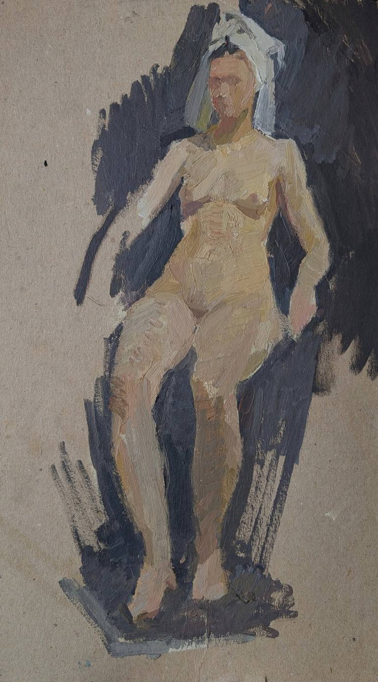 This study is done with oils on panel. It is a classic example of quick academic painting.