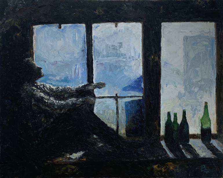 Inspired by Van Gogh and early Rembrandt, it captures a sense of deep contemplation after a life event. The heavy application adds weight to the thought. It’s purposely abstract as to the location, could be urban or rural, and the mysterious alcohol remains untouched adding intrigue to the temperatu...