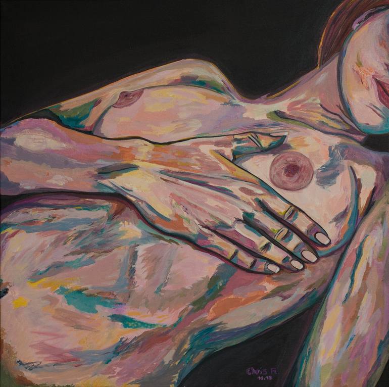 Nude study / hands on canvas study, post impressionistic. `I sink like a stone that’s been thrown in the ocean My logic has drowned in a sea of emotion Stop before you start Be still my beating heart` (Sting)