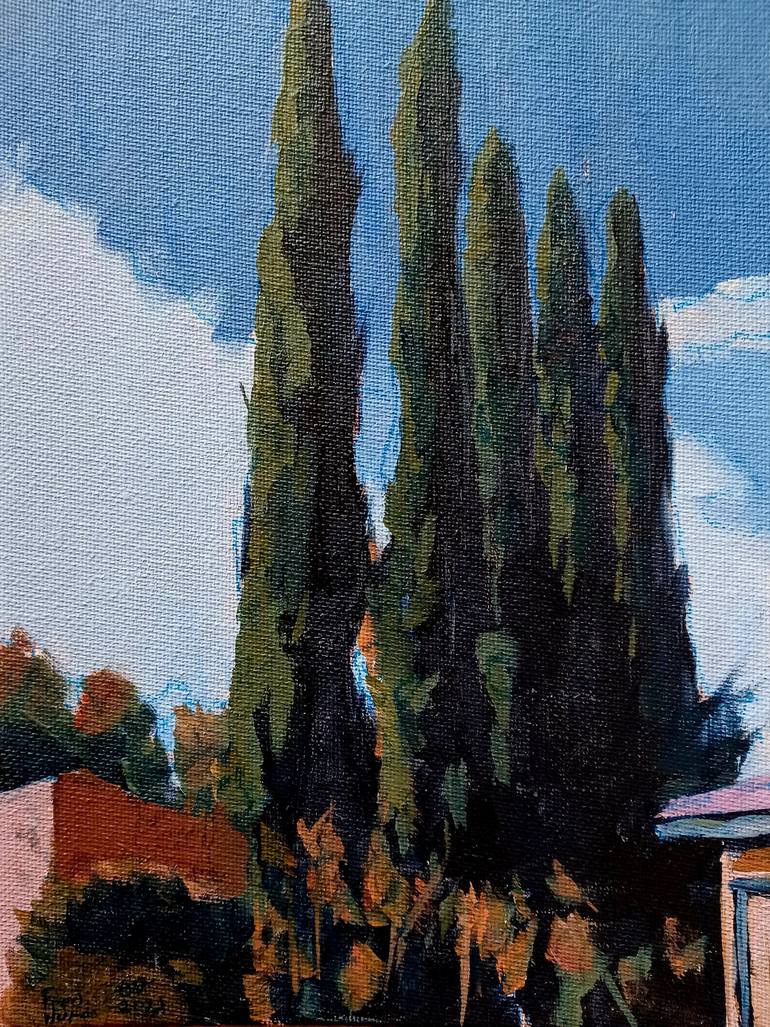 "Afternoon Light / Cypress Series #1." is an original painting that captures the essence of the Urban Forest. This piece is part of an ongoing series, exploring the intersection of nature and the city. Crafted with a blend of oil, acrylic, and ink on canvas, the artist's expressionistic style shine...