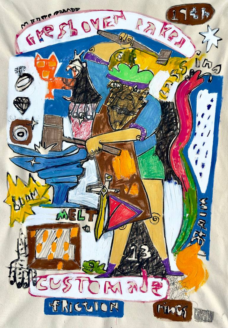 BIO Born and raised in a small fisherman’s village in southern Sweden, Jonas Fisch traded continents in 2002 and dwelled in LA for about two decades before moving to the East Coast. He currently lives and works in Miami but tends to create paintings in different locations when traveling. Jonas has exhibited across California, in New York, Chicago, Boston, Phoenix, Miami, Switzerland, China and Hong Kong. His paintings can be found in private collections and institutions around the globe. ARTIST STATEMENT As a fundamentally introspective person I have an explosive need to express, communicate and reflect my innermost thoughts and feelings. Painting allows me to explore my own subconscious, examine and confront my own experiences. I usually don't have a preconceived idea, but rather a strong notion or vision of what I want to create. Like a sponge I try to soak up inspiration from all around. Sometimes it’s literature, film, music, past or present events that become vibrant, buzzing reflections and commentary on society expressed in colorful figures, words and shapes. Other times it's daily life, personal experiences and emotions that flood my mind and spill onto the canvas. I like to stay in a state of negative capability, where I don’t necessarily know what I will paint but trust that I will paint something. Something will come out in a personal expressive language with a jazz-like diaristic spontaneity. It’s like wringing out that inspirational soaked sponge onto the canvas. My process is instinctive and organic, the paintings energetic and vibrant emerging from my subconscious without judgment, hopefully full of surprise being put together by feelings trying to find a harmony in an imaginary universe. Endless metaphors, messages, layers and symbols move in and out of focus as your eyes explore my mythological puzzle pieces with multiple solutions. You’ll see a face, then struggle to find it again as the same shapes become the arm or a leg of a larger character, letters in a cryptic word, poem or clusters of stars and trapezoids. My pieces keep evolving piece by piece just like life expands with every breath and year. Just like with any art, I think the listener, reader or viewer is the last participant completing the artwork with their own emotions. There aren’t any mistakes only possibilities. At a certain point the painting takes on a life of it's own and reveals itself. It's the point of no return and I have no choice but to paint it.