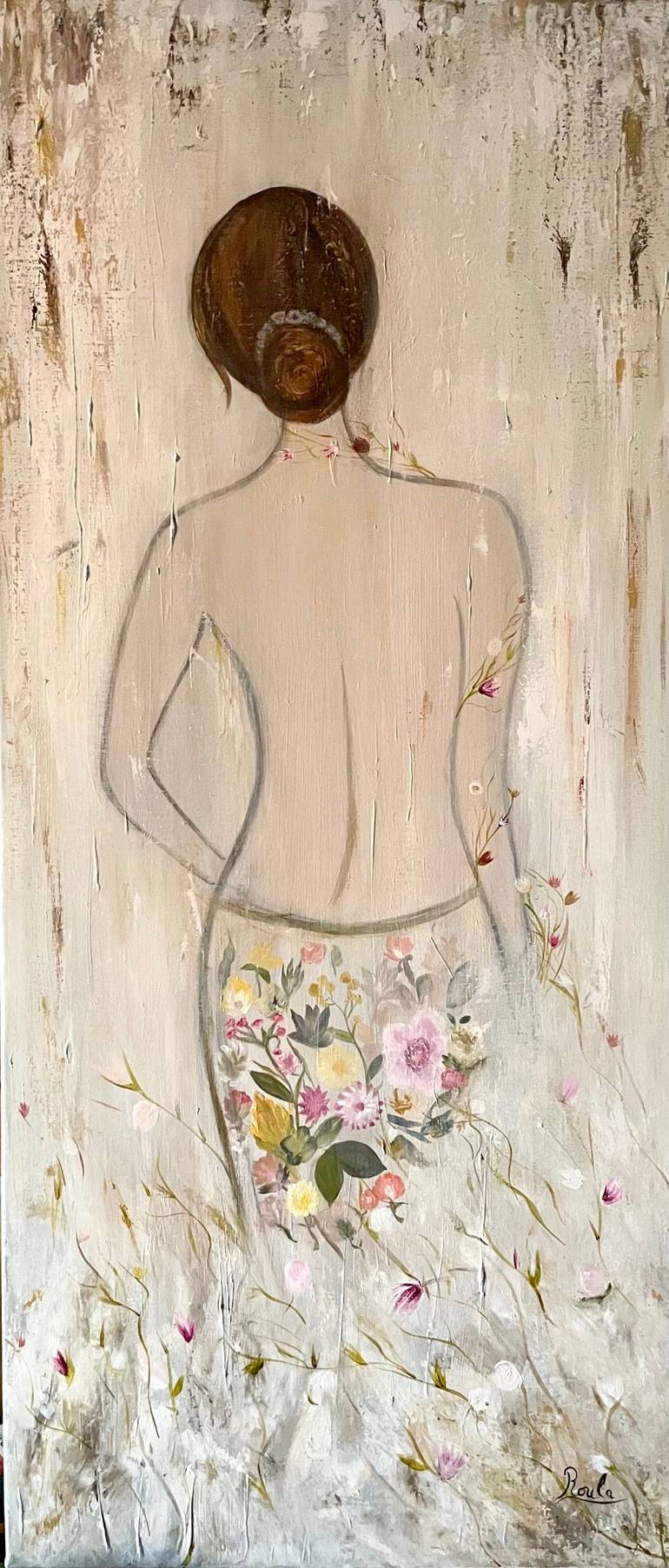 A beautiful silhouette of a lady, who’s dropping the weight of her life and leaving everything behind. An abstract work painted with palette knife and soft brushes, playing with bright colors to give a vivid combination to the eyes of the viewer