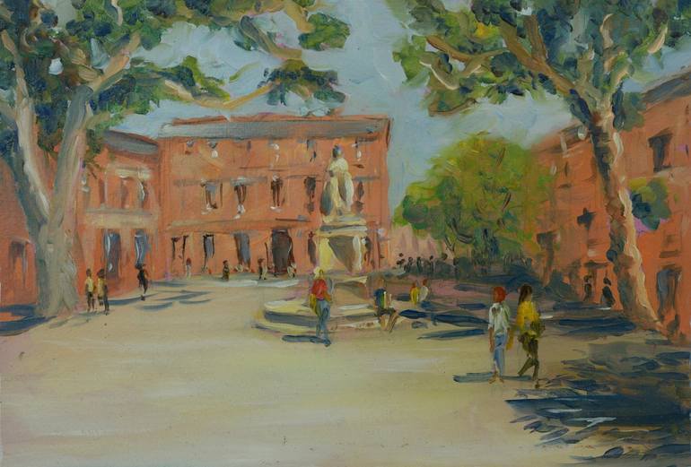 Aix en Provence, France, France. Original oil on wood board painting. Done in impressionistic style.