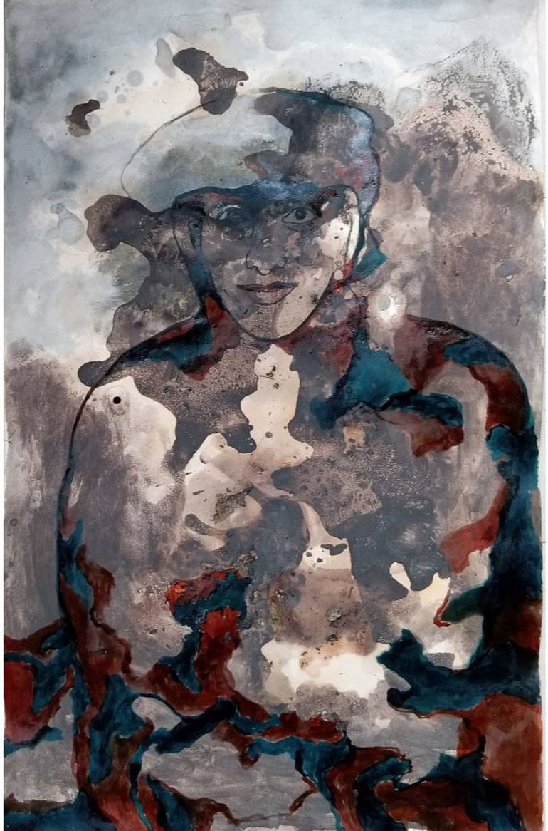 Ajida became part of the land where she is now and she was part of it where she was. Basically, she doesn't have any particular land. trying to show what i felt, when i saw ajida. a parson how is trying to feel her existents when she is nowhere . acrylic on paper . try to draw the parson and the i...