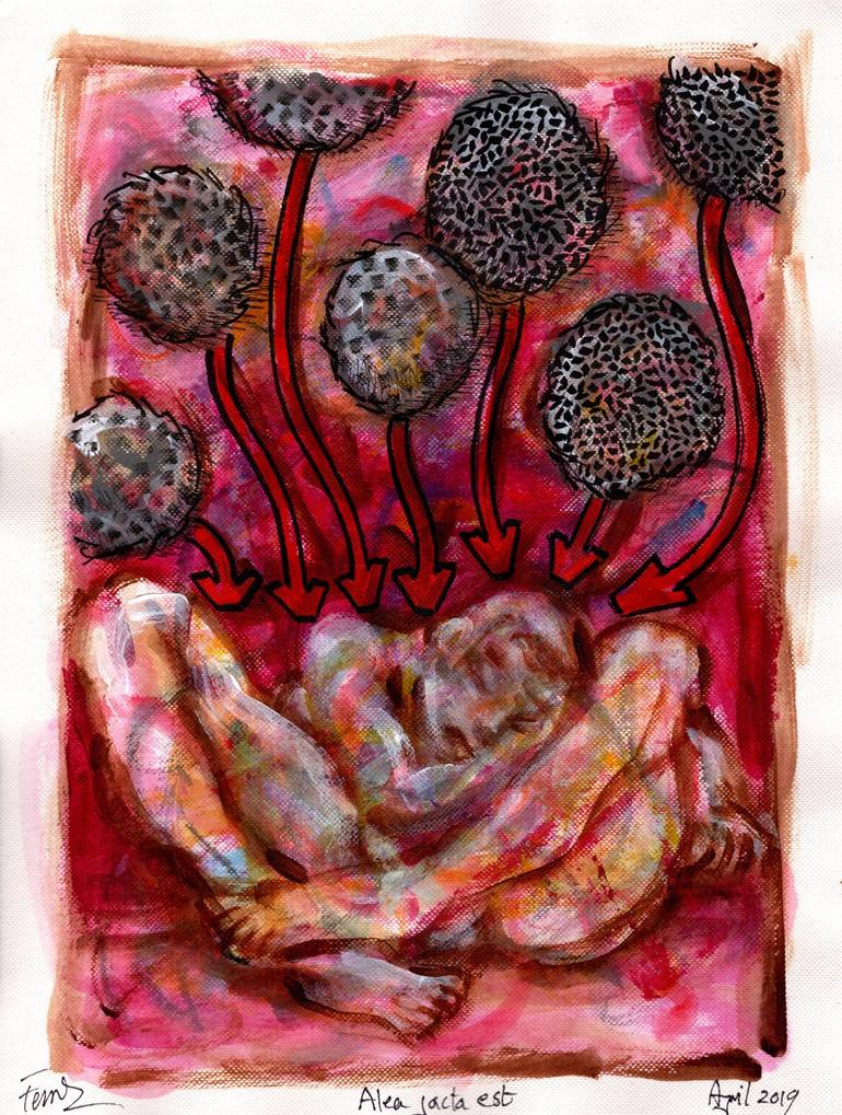Having decided that a realistic rendering of a execution in Brunei was out of the question, this is a sort of metaphorical image. The stones are suspended in mid-air, the vectors of throw indicated with red arrows. The face has accidentally ended up looking like TH, but not intentionally.