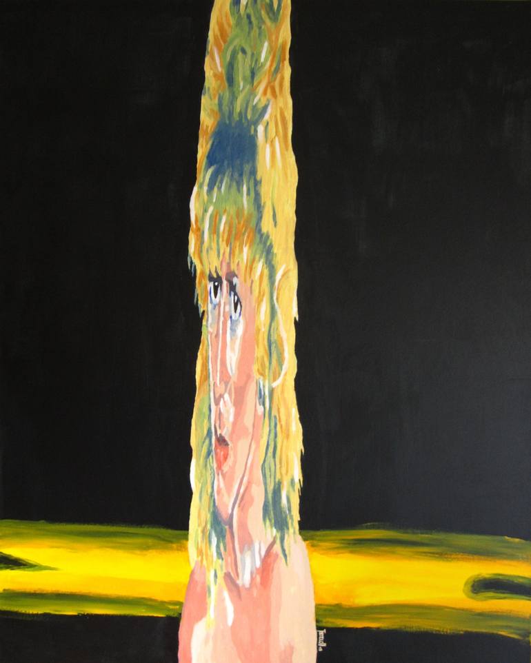 The intense and bright colours, transport of feelings, are unconditional to my mode of expression. This figurative and anamorphic portrait is one of the series "Elles, nous", (series of 14 paintings). It is an attempt to portray the alienation of individuals, the lack of understanding at the time o...