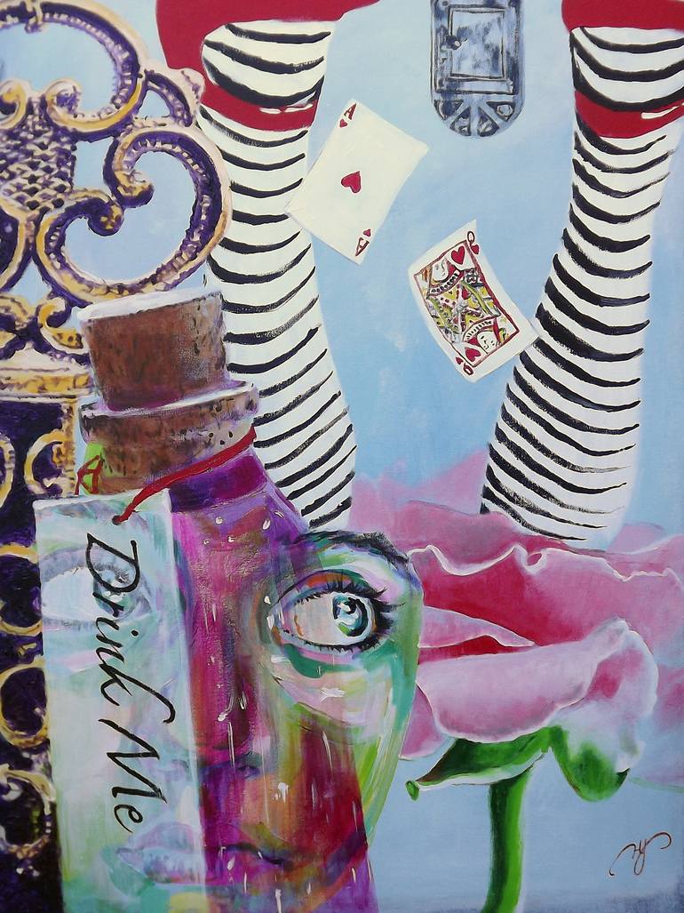 Alice in wonderland, colorful, red shoes, key, bottle, purple, pink, red, door, face