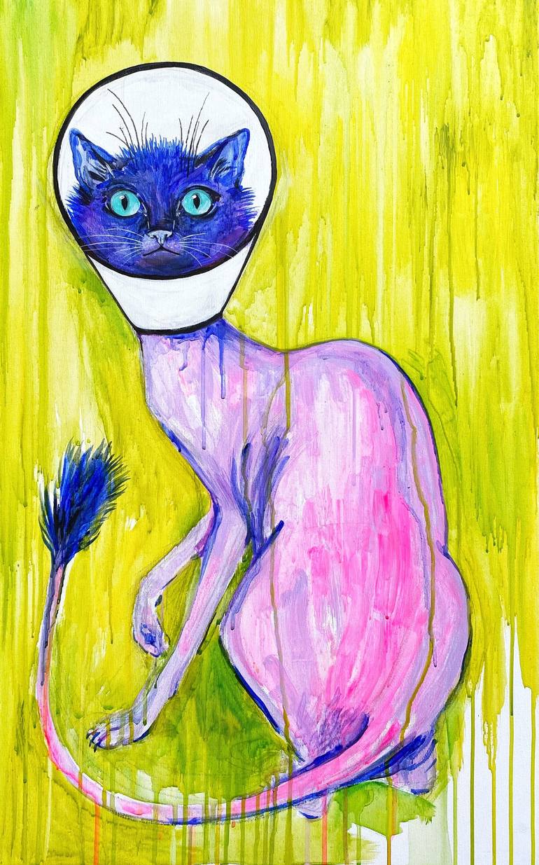 Sofiia Bortnikova Alien cat, 2020 Acrylic on canvas, varnished 80 × 50 cm 31.4 × 19.6 in This is a unique work This painting has started with my cat. She just got back from the groomer and had to wear this funny hat. And when I started spraying her with the medicine prescribed by the veterinarian, ...