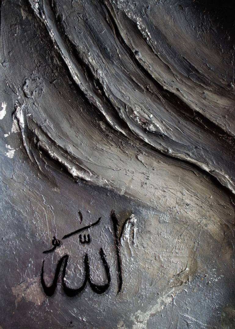 Through the despairs of depression only one thing helps. Al-Waheed so I did heavily textured art with a metallic background, and a small calligraphy on top.