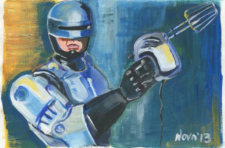 In collaboration with my very talented friend Andrew - this RoboCop was created. And obviously with lots of sweet childhood memories of mine- he used to be my hero :) I've decided to domesticate him a little bit. A picture is unframed and has a 1.5 -2cm boarder for pasportou. Made on a special thic...