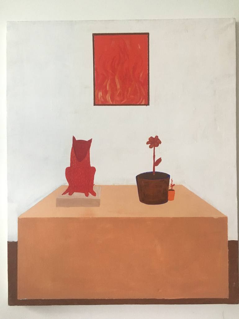 This is an Altar whit my major attributes. The dog in this picture symbolizes me, the plant represents the different progressions in my life and the flaming fire refer to the continuous renewal.