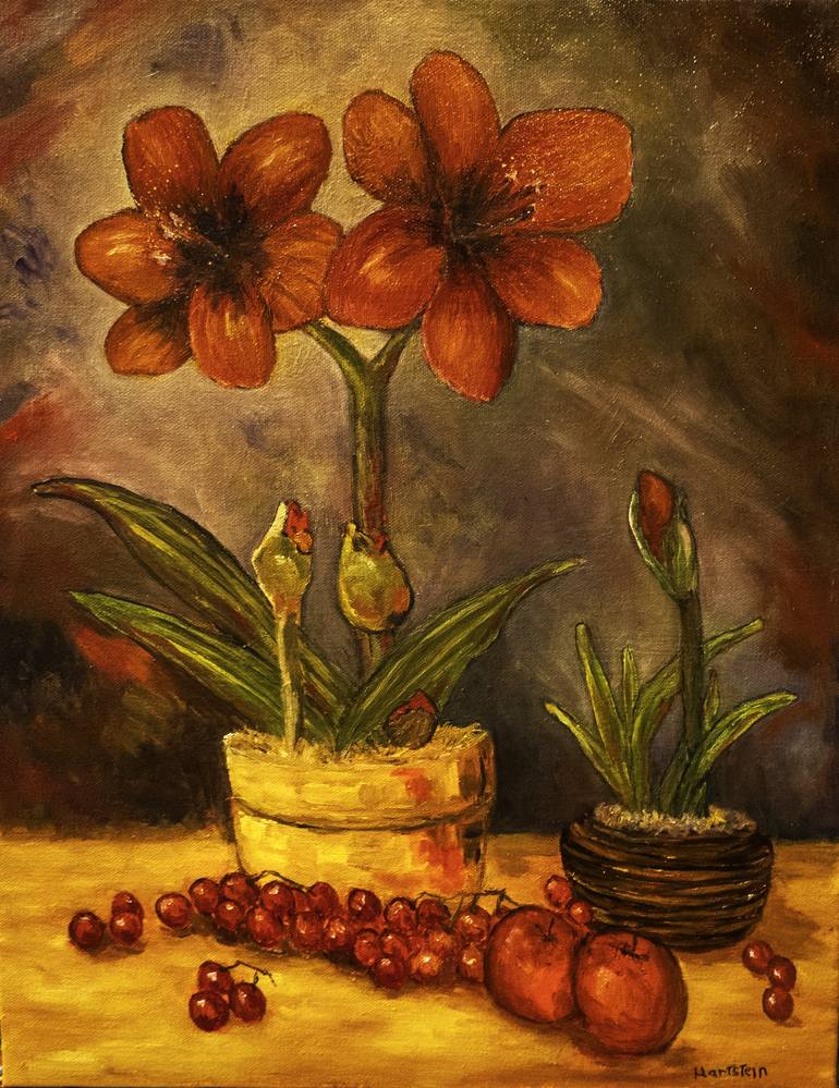 I saw these beautiful red flowers at a Christmas party my wife and I just went to. The hosts had this beautiful red Amaryllis plant as a center piece.. What I liked was that they had a beautiful red color. I told the host that I had to paint them. When I started to paint them, I was thinking more ab...