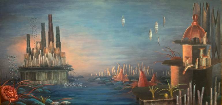 My work process always begins by building a tridimensional model with a variety of materials. I create something similar to a maquette based on the image I have in my mind. I later use that "maquette" as a model for paintings and drawings. In this case I built deep ocean creatures entirely out of Am...