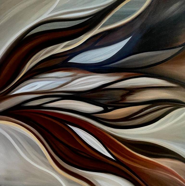 "Amber" is an earthy and bold original oil painting on canvas that brings the beauty of the earth to your space. The abstract composition features a rich palette of organic earth tones reminiscent of geological formations. The colors flow together creating a sense of depth and movement and giving th...
