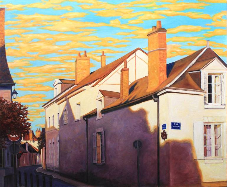 This original oil painting on canvas, "Amboise", captures the enchanting essence of a French village nestled in the Loire Valley. The artist's inspiration stems from a memorable trip to Amboise, where the interplay of sunlight and shadows painted a breathtaking scene upon the village walls. Warm bl...