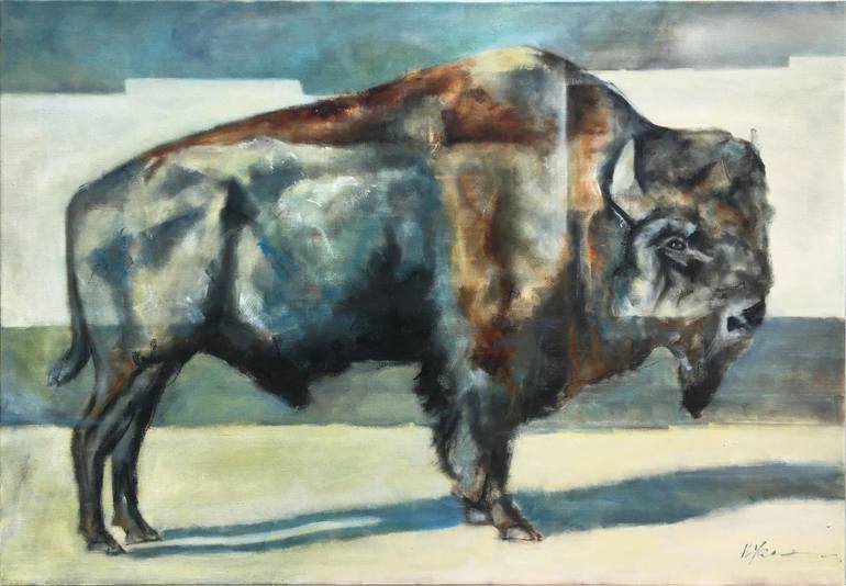 Original oil painting "Buffalo" This original modern oil painting has unique impasto texture and beautiful, glowing color, comprised of multiple layers of rich oil paint creating a luminous work of art, and showpiece for any space.