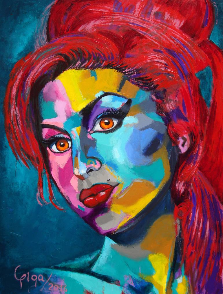 Un ícono de la cultura pop de la época que se mostró auténtica, sin embargo la sociedad absorbió sus buenas intenciones, haciéndola perder el control. Su trabajo como cantante fue muy intenso y colorido, eso es lo que trato de representar en su retrato con los colores intensos y grandes contrastes, ...