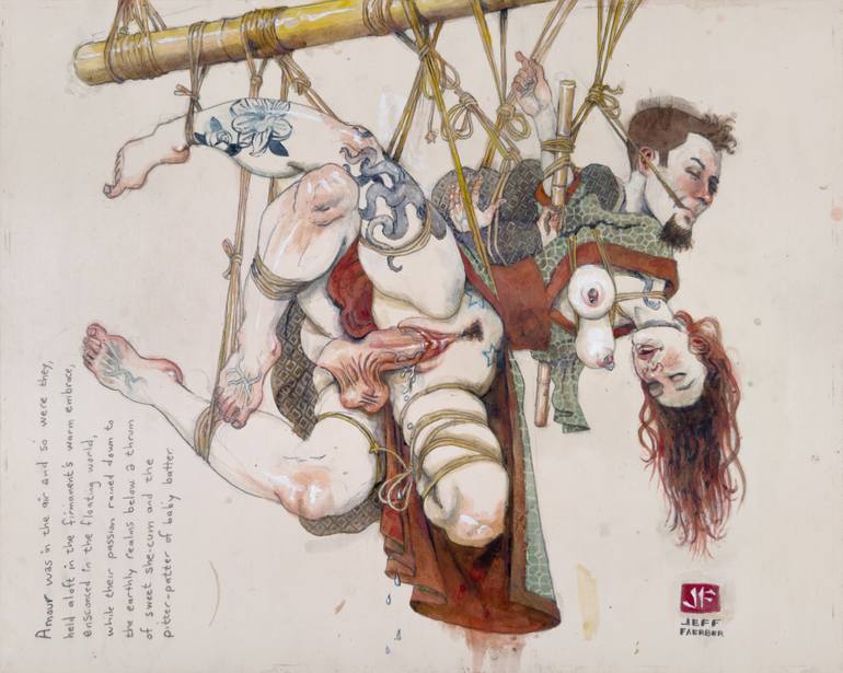 full title: Amour was in the air and so were they, held aloft in the firmament’s warm embrace, ensconced in the floating world, while their passion rained down to the earthly realms below: a thrum of sweet she-cum and the pitter-patter of baby batter an homage of Japanese erotic woodblock prints ca...