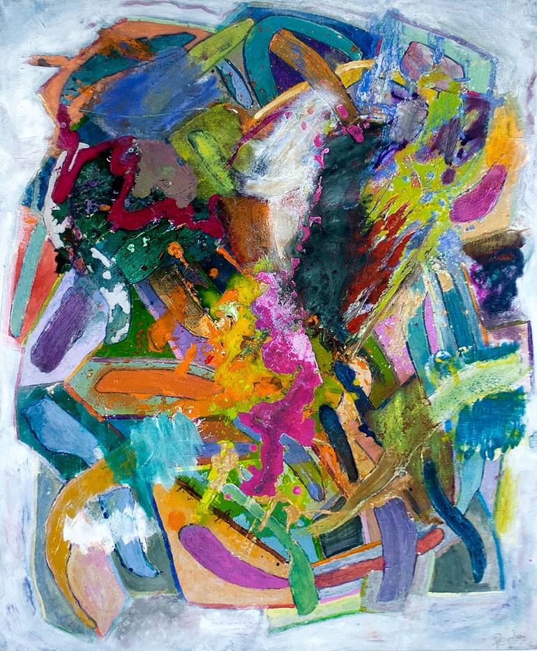 Don Perley is a maker of abstract paintings, mixed media pieces and assemblages. He has been making art for over fifty years, in Chicago, in San Francisco, in Philadelphia, and now securely settled in Stamford, Connecticut. Artist Statement: Don Perley’s work is improvisational, layered and complex. Secrets are revealed slowly, both in oil painting and deep relief assemblage. He is immersed in the raw and rough. However, just as in the improvisations of nature seen from a hiking trail, the raw and rough, upon close observation, are also delicate, soothing and healing. Don’s paintings push the eye from one passage to another on a journey of color juxtapositions, while exploiting the physical properties of paint and ink, pushing them to their limit. His assemblage pieces deform familiar raw materials, exposing their essence and possibilities. Ultimately what Don creates are arenas and conditions for colors and materials to display their properties freely and combine in unplanned and joyous ways. His intention is not so much the creation of art but more a search for spontaneous life springing out of improvisations in pure color. This is a fundamentally exuberant enterprise, and the artist sees it as direct painting, direct expression and direct communication.