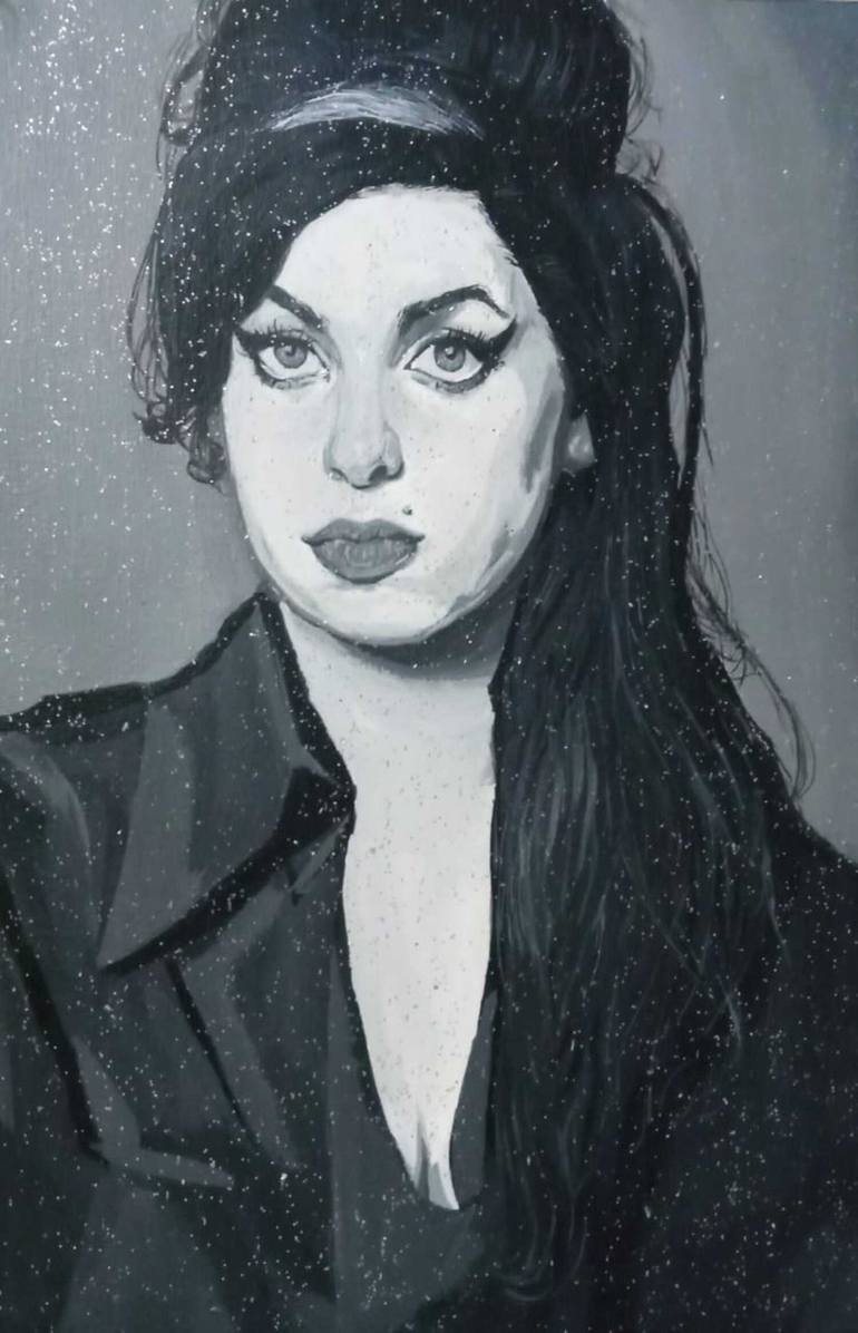 Painting by Amy winehouse in acrylic paint and varnished with varnish and glitter. I made this art because I'm a big fan of Amy and it was my way of honoring her.