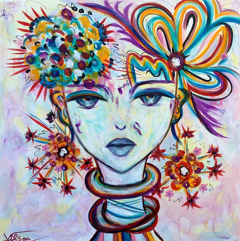 Hand-painted. Not a print. Painting is signed at the back. Dated. Contemporary FINE ART Original PAINTING, acrylics on 100% cotton stretched wrapped canvas. Title: "Amy'', 2024, ready to hang Size: 31.5''x 31.5''( 80x80cm) In order to protect your painting, I will pack your painting with great car...