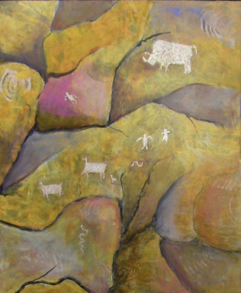 This is an acrylic painting of Anasazi petroglyphs. While visiting Mesa Verde National Park in Colorado U.S.A., many photographs were taken of the cave dwellings of the Anasazi Indians now believed to be the ancient people (500 to 1300 AD). Anasazi people appeared to have disappeared or evolved into...