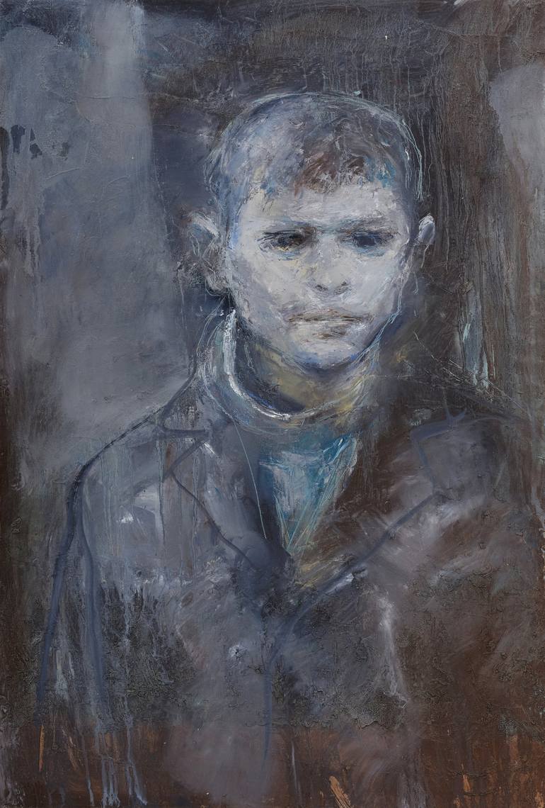 Zakhar Shevchuk's "Anatoly" emerges as a profound oil on canvas work, presenting the dichotomy of youthful innocence and an old soul's gaze. This expansive piece is a reflection of history captured through the eyes of a boy, whose mature and unsettling stare bridges past and present. The artwork, su...