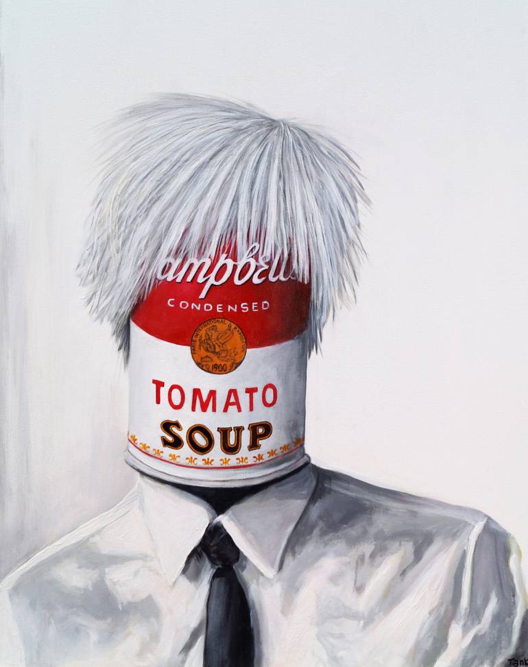 This is my portrait of Andy Warhol using his iconic Campbell's soup can for his head