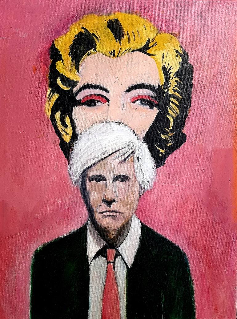 This is a painting of Andy Warhol in front of an image of Marilyn Monroe. I am interested in the contrast of the artist and the model. The real person and the image.