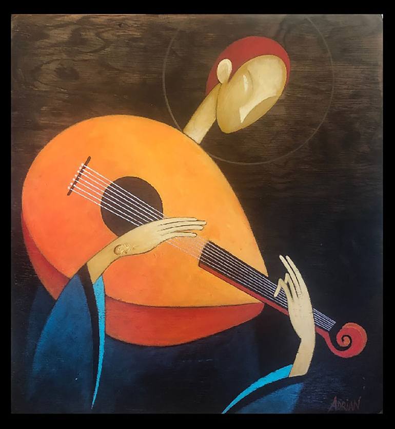 Angel Playing the Lute Painting