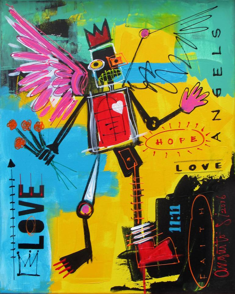 From my Collection "Tribute to the great masters" Mixed media on canvas. Inspired by Michelle Basquiat. TRIBUTE TO THE GREAT MASTERS This is such a great pleasure and a fun project. What an honor to be working with the style and respect that the great masters deserve. It is not easy to create maste...