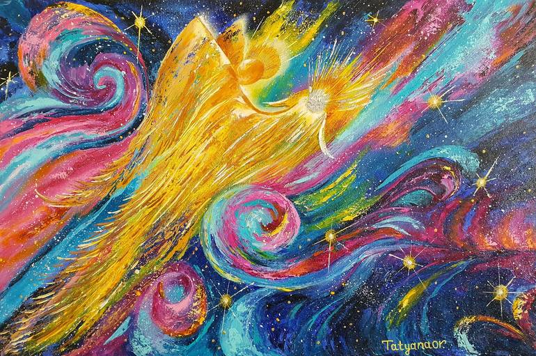 The inspiration to write this picture came to me after reading a poem about an angel who flies through the starry sky and in his hands is the soul of an unborn person and the angel sings a beautiful song to this soul. The painting is written in the style of expressionism, which in my opinion, perfe...