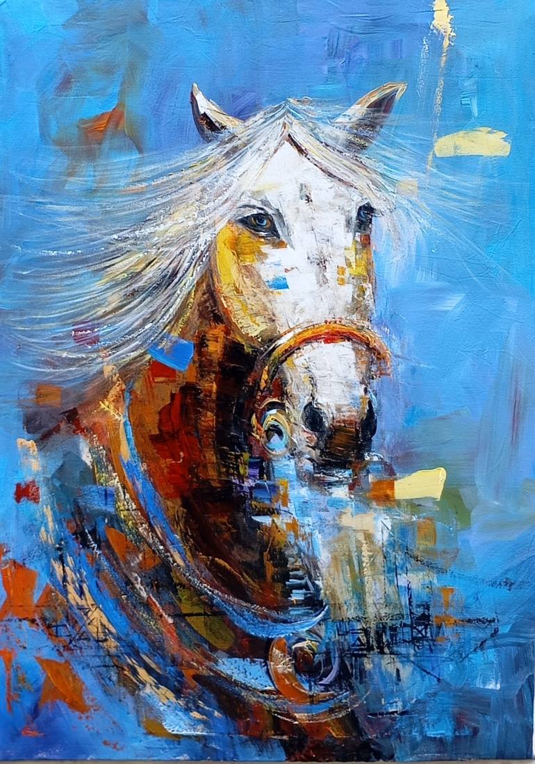 The beauty of horse and is simplicity Domestic animal with friendly heart if taken care of. Acrylic on canvas Impression painting, pallet knife effect and brush strokes.