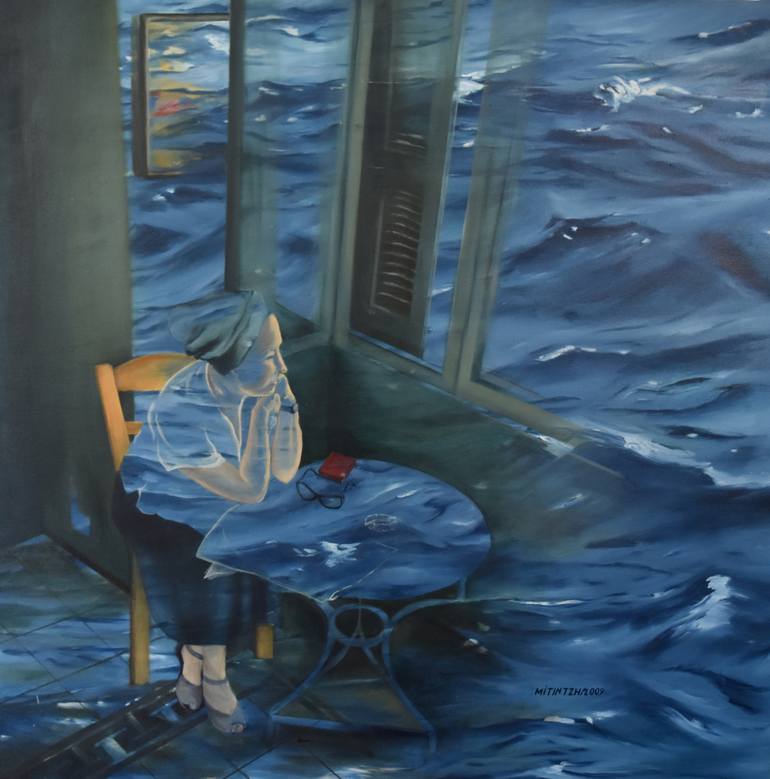 This painting depicts the impermanence of life. The water acts as a border between life and death but simultaneously as the mean for the emergence of the new life.
