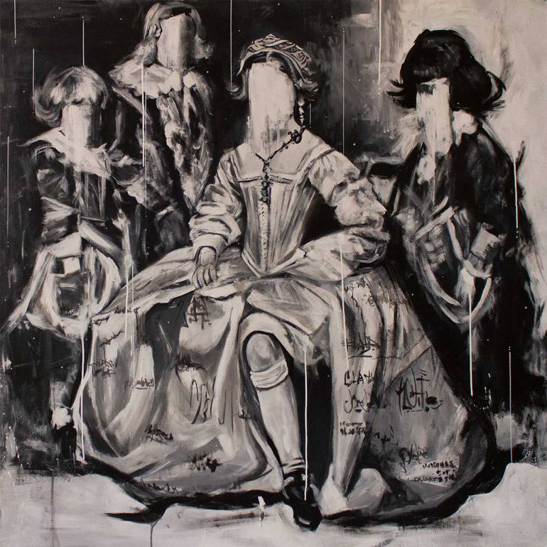 Title: Anonymous Infanta Artist: Nozvvu Series: The Invisibles In this striking work, Nozvvu deconstructs Velázquez’s iconic universe. The Infanta Margarita and her attendants appear majestic, yet faceless — their power and identity erased. Part of the series The Invisibles, the artist confronts t...