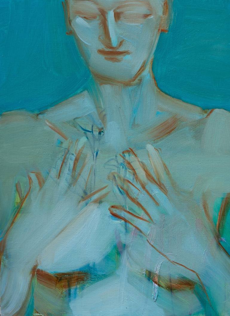 I perceive the world as an ocean where, below its visible surface, layers of complexity can be found in its depths. Painting, for me, is intuitively diving into and through the ocean to discover new dimensions and planes. It is an alchemic activity where the creative decision-making process and my presence as the artist is evident. My painting is an expression of my particular view, involving aspects of reality, nuanced memories and philosophical contemplations. In my work, I aim to describe the essence of life. Experience, observation and study of the human psyche support my work, I empathize with and give voice to my human subjects. In the paintings regarding time and place, I construct surrealistic locations including abstract elements. Like a frame from a film, the painting is a moment arrested in time. During my creative process, I blur the line between reality and the inner experience of my portrayed models, using symbols, surreal locations and abstract elements. I use diverse layers which often lay on each other, melt and synergize. They also have the role of playing with the viewer, exposing and revealing a story shown in the picture.