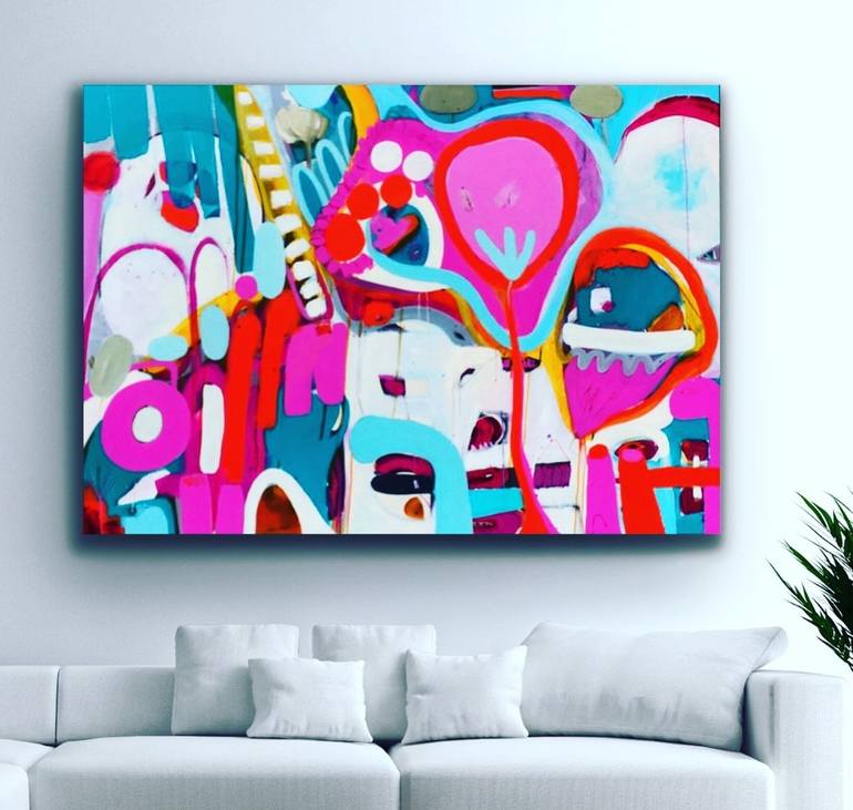 Acrylic Paint on canvas, stretched and ready to hang. Signed with a certificate of authenticity. This work is quite large and is a direct response to the strange situation we find ourselves in now due to the Covid 19 virus. It is my was of escaping the real world and making another world where thi...