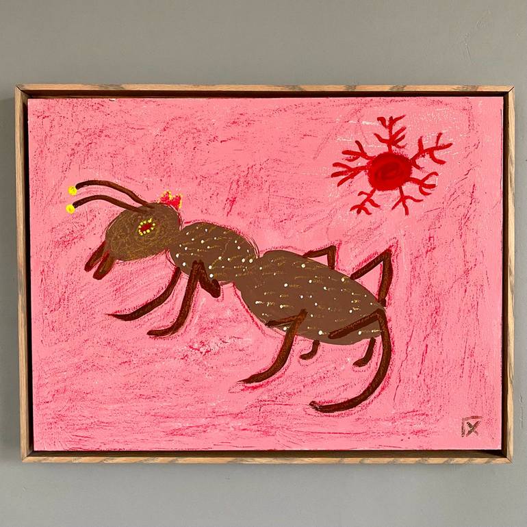 "Ant-Ha-Ha" is a vibrant and metaphorical piece symbolizing relentless movement forward despite obstacles. Like a small yet unstoppable creature, the ant overcomes all difficulties, with laughter as its weapon and strength. The delicate interplay of colors, textures, and lines creates a dynamic mood...