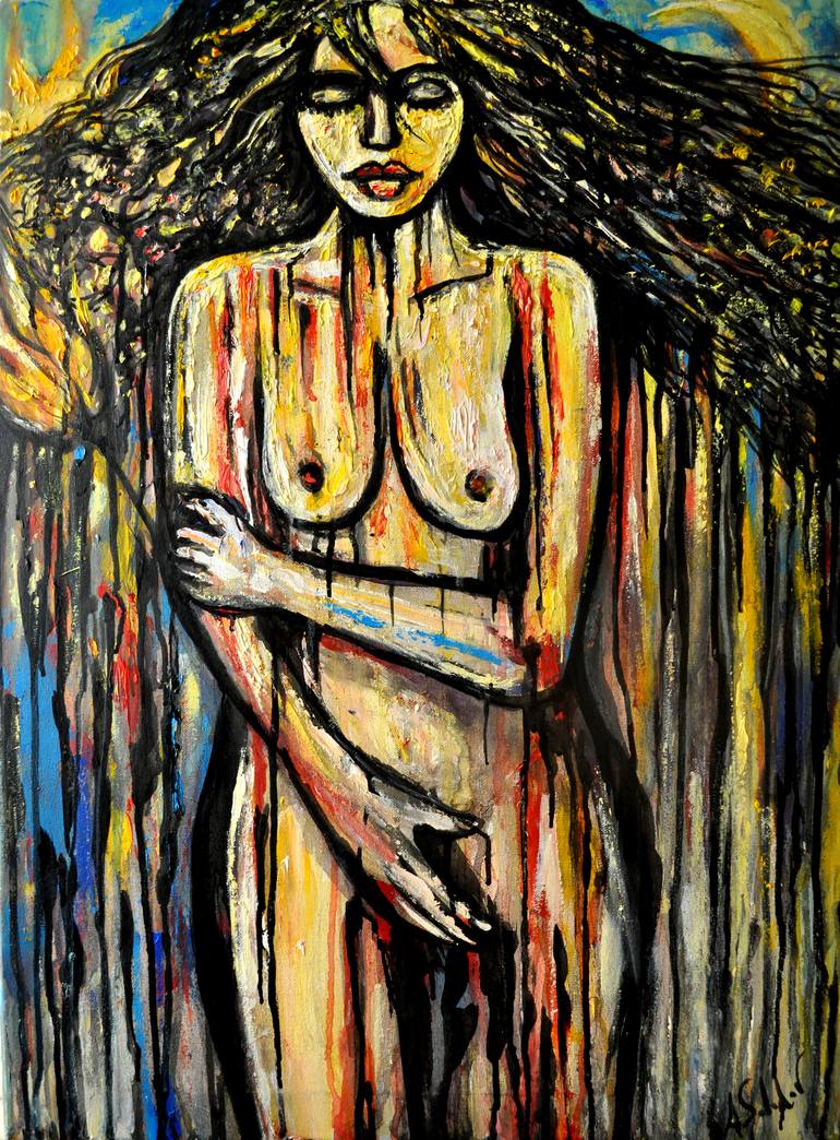 Acrylic painting portrayed the Greek goddess of love, beauty, pleasure, and procreation - Aphrodite. Aphrodite had many other names, such as Acidalia, Cytherea, and Cerigo, each used by a different local cult of the goddess in Greece. In expressionistic pop art style. Inspired by alchemy and esoteri...