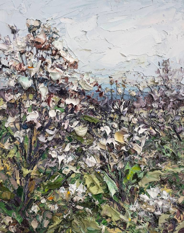 Textural landscape painting of the mountains and dried flowers along the Appalachian Trail in Virginia. Edges painted to match; wired and ready for hanging or framing.
